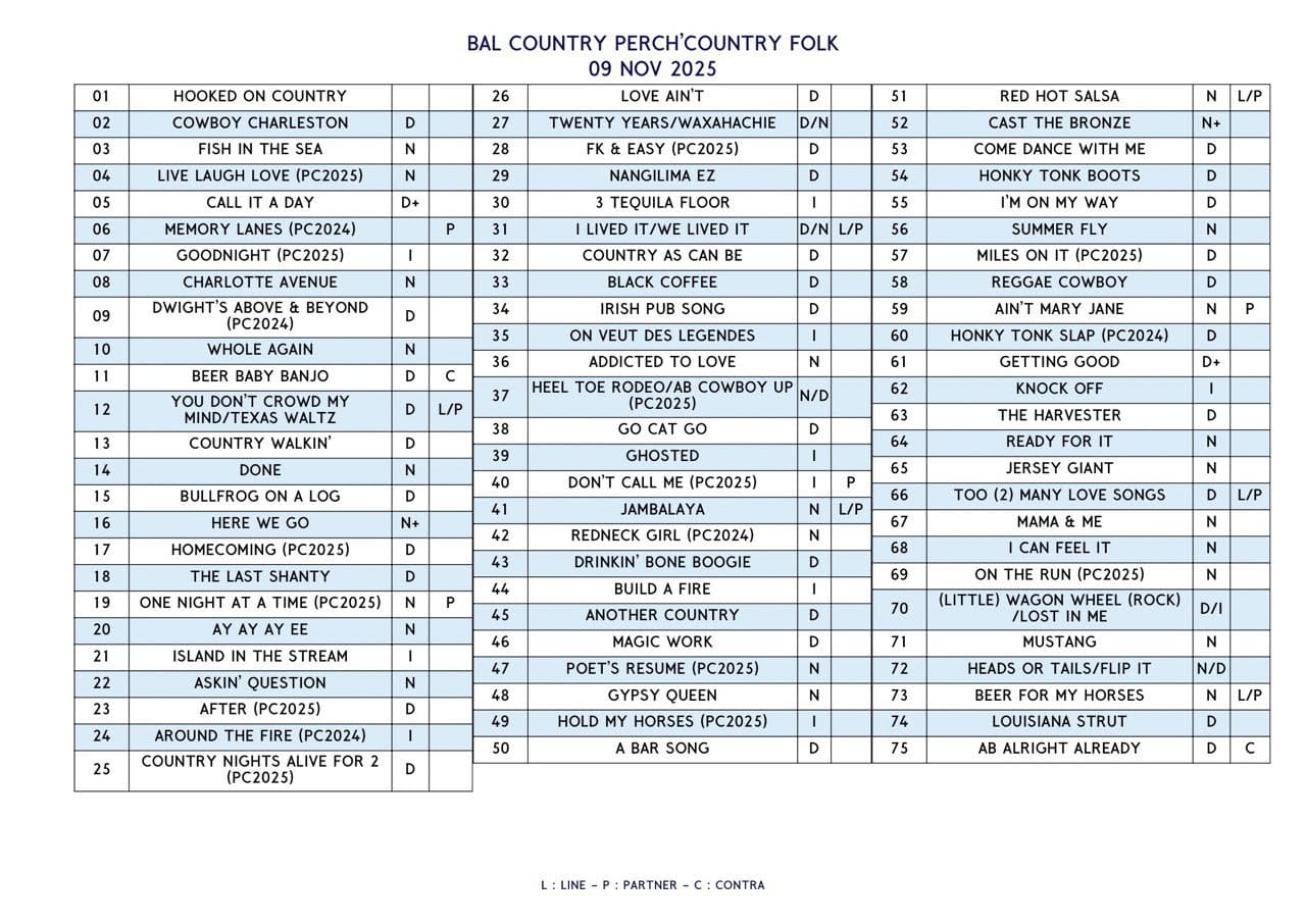 Bal Country le dimanche 9 novembre 2025