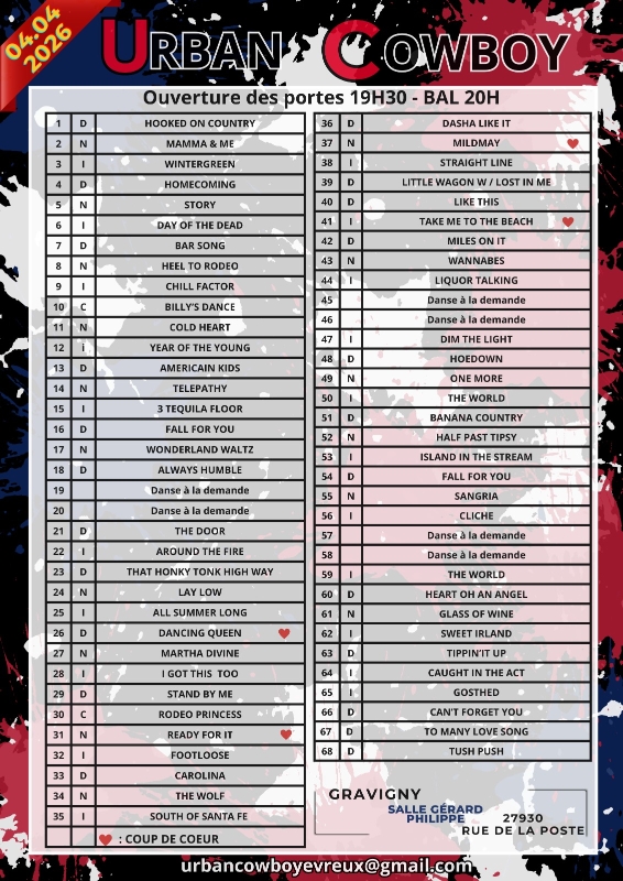 bal samedi 4 avril 2026 salle Gérard Philippe à Gravigny, rue de la poste. entrée 6 euros et gratuit pour les moins de 12 ans. buvette et petite restauration sur place. renseignements et réservation par SMS
